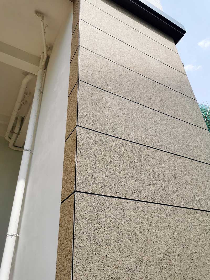 裙樓采用仿花崗巖貼片,不但達到預期的設計效果,綜合成本更降低至天然石材的三分之一。