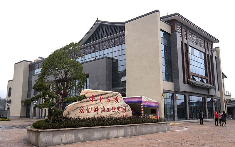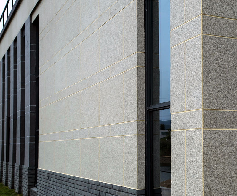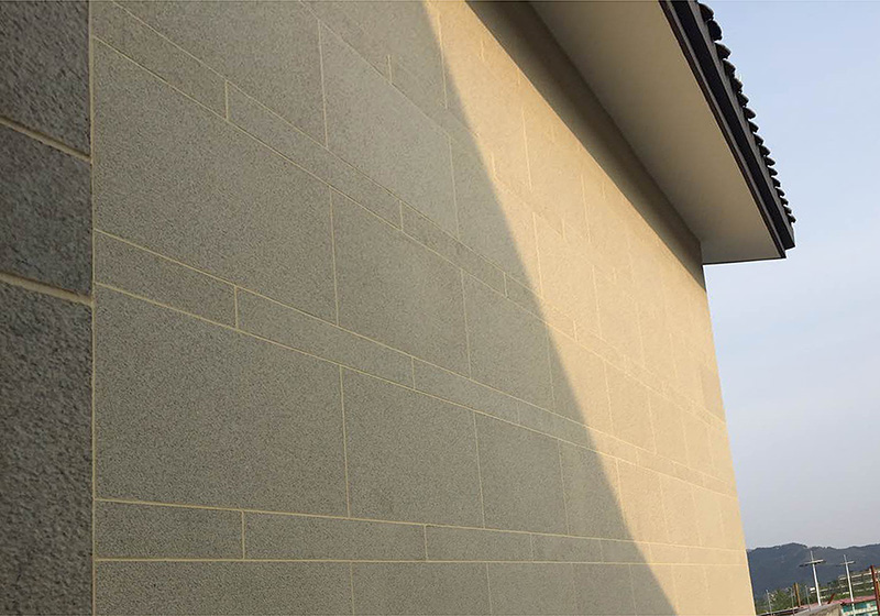 以淺米色花崗巖貼片為主體,正面清灰板巖深淺混搭,完美勾繪出千島湖明清時代深墻大院的風(fēng)韻。